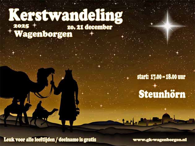 WAGENBORGEN – Op zondag 21 december a.s. vindt de jaarlijkse Kerstwandeling plaats.